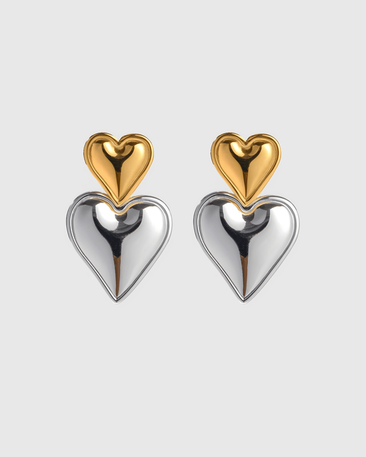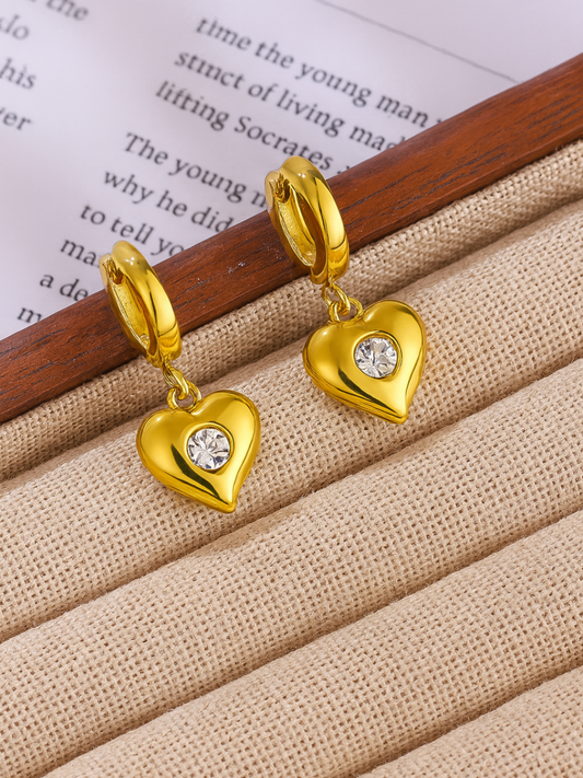 18KT Gold-Plated Puff Heart Shape Zircon Drop Hoop Earrings