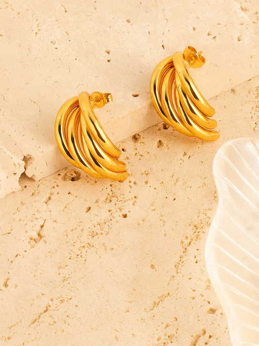 18KT Gold-Plated Curved Folded Hoop Earrings