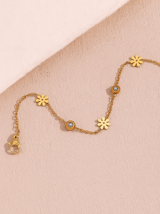 18KT Gold-Plated Bead flower Dainty Chain Bracelet