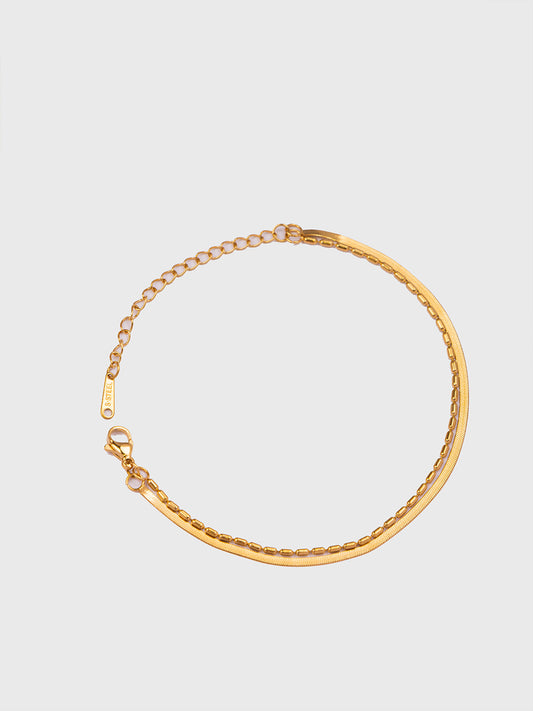 18KT Gold-Plated Zircon Herringbone Chain & Bead Chain Bracelet