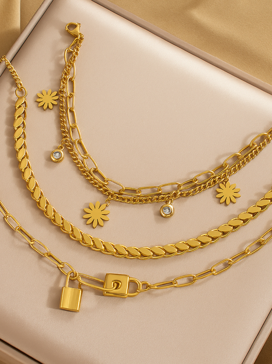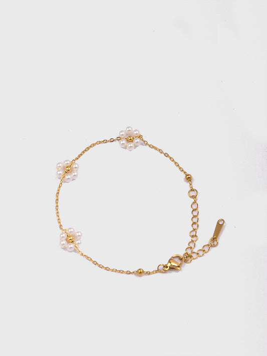 18KT Gold-Plated 3 Bead flower Dainty Chain Bracelet