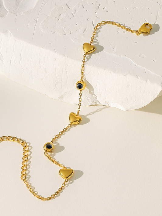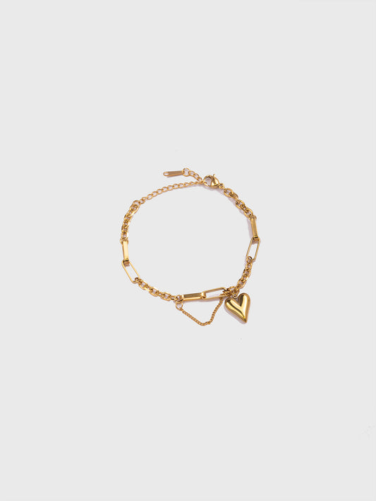 18KT Gold-Plated Heart Charm Chain Bracelet