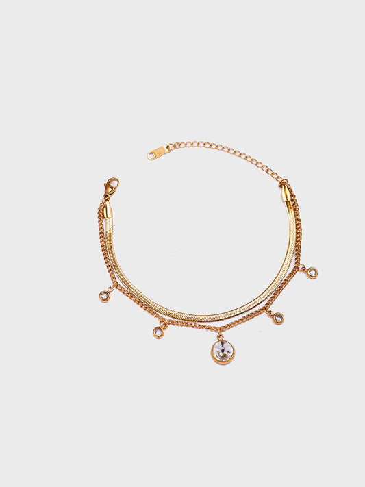18KT Gold-Plated Zircon Charms Herringbone & Curb Chain Bracelet
