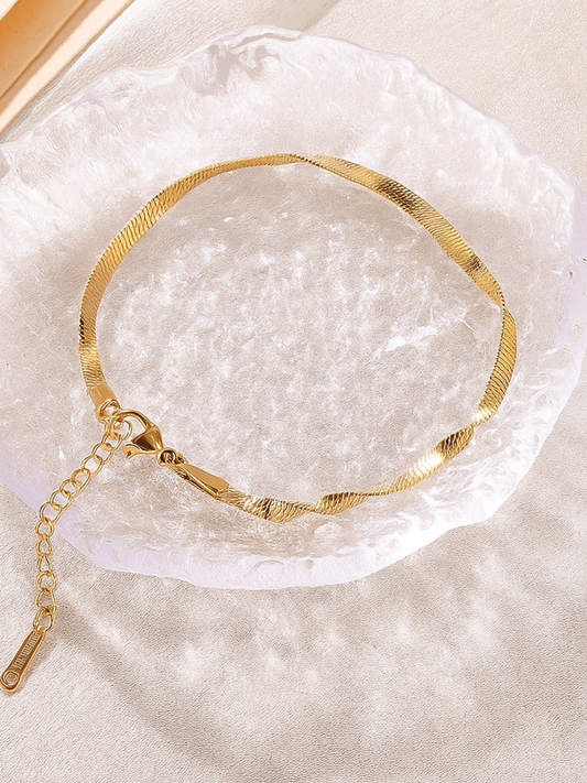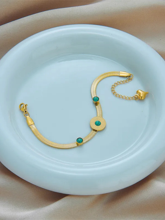 18KT Gold-Plated Blue Bead Herringbone Chain Bracelet