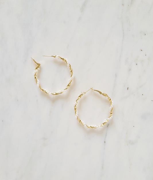 18KT Gold-Plated Sprial Pearl Dangling Earrings