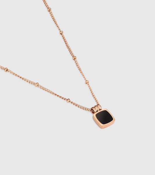 Rose Gold Black Onyx Square Charm Pendant Necklace