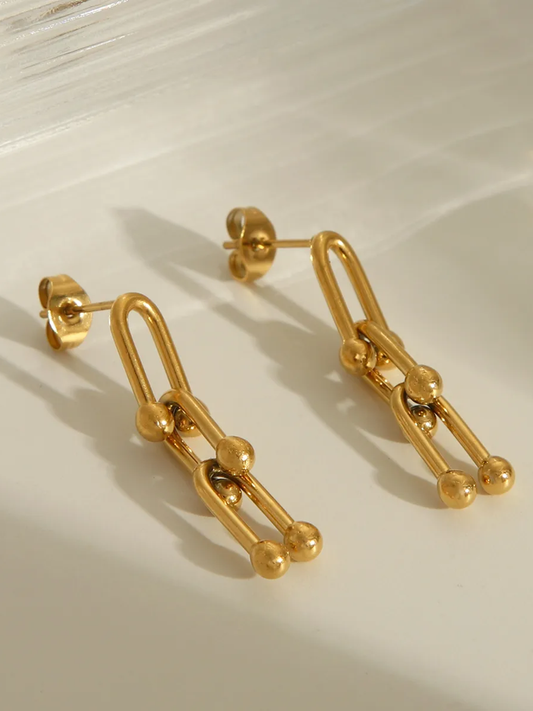 18KT Gold-Plated Hardware Link Chain Dangler Earrings