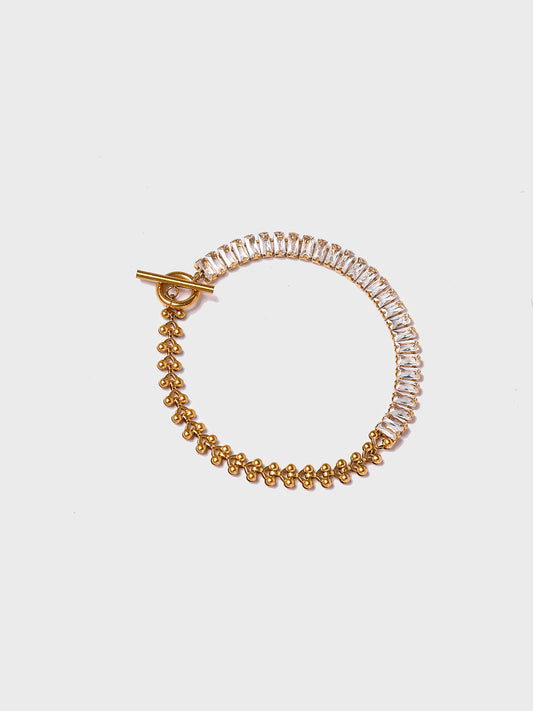 18KT Gold-Plated Half CZ & Half Gold Chain Bracelet