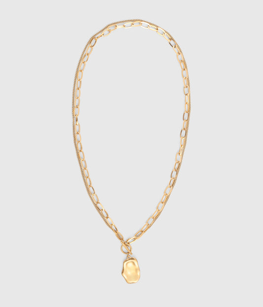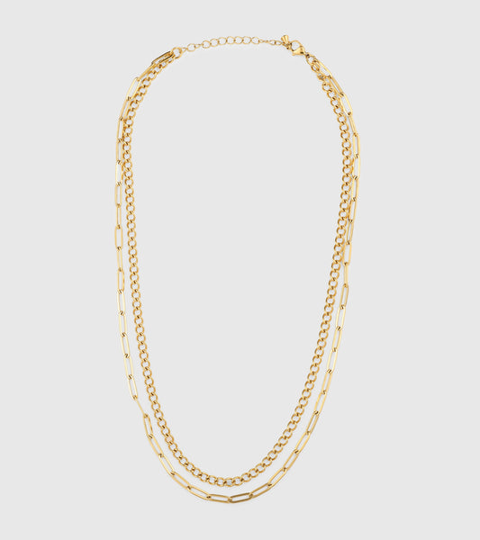 Gold Curb & Paperclip Double Layer Chain Necklace