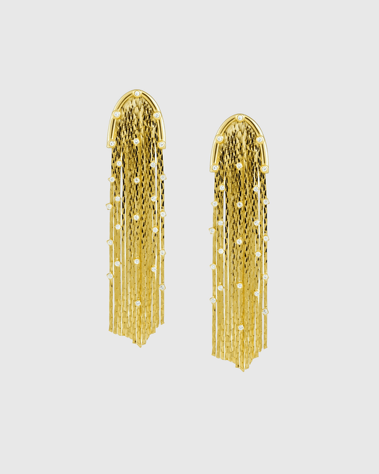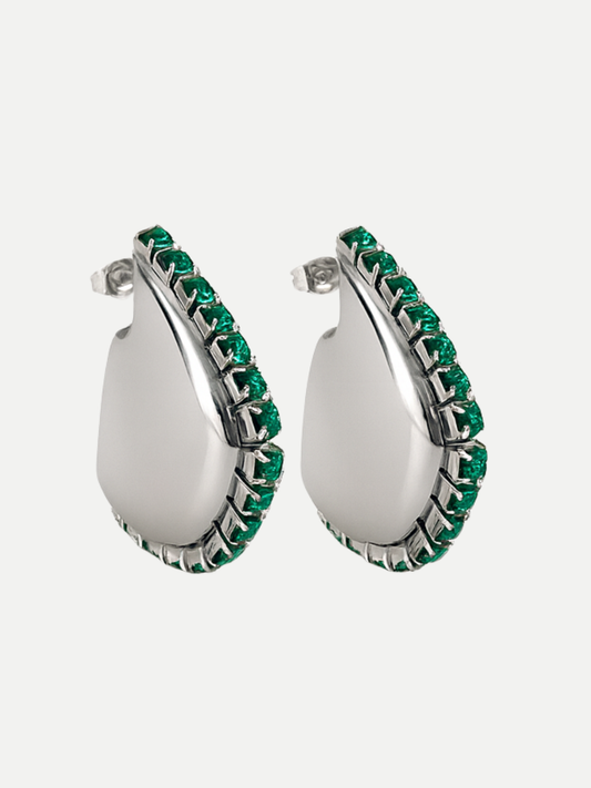18KT Silver-Plated Green Tennis Chain Edge Statement Earrings