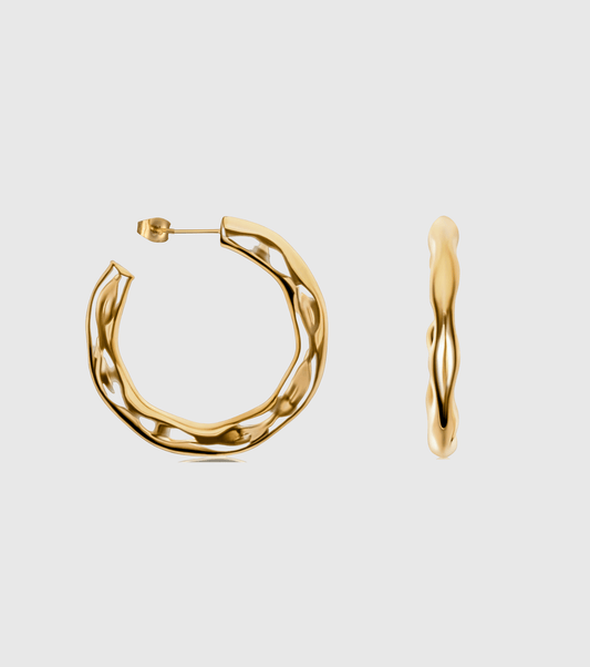 18KT Gold-Plated Sea Wave Spiral Hoop Earrings