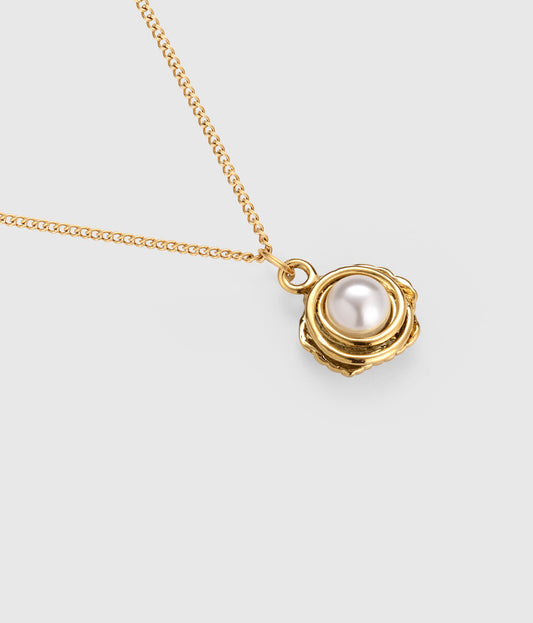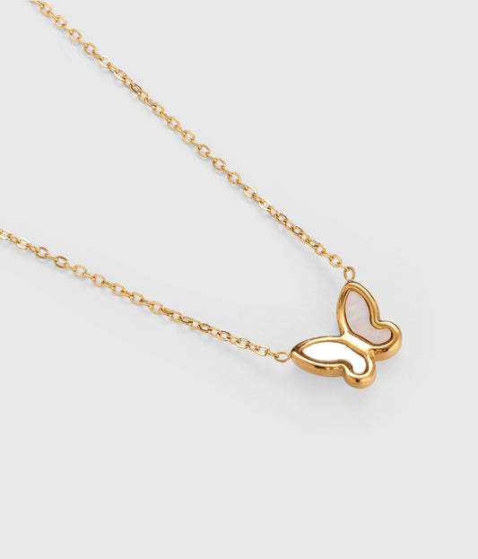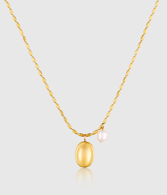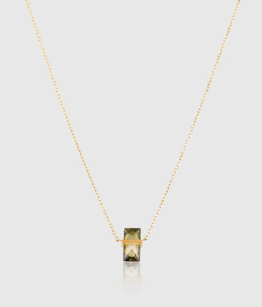 Gold Mother of Pearl Gemstone Square Charm Pendant Necklace