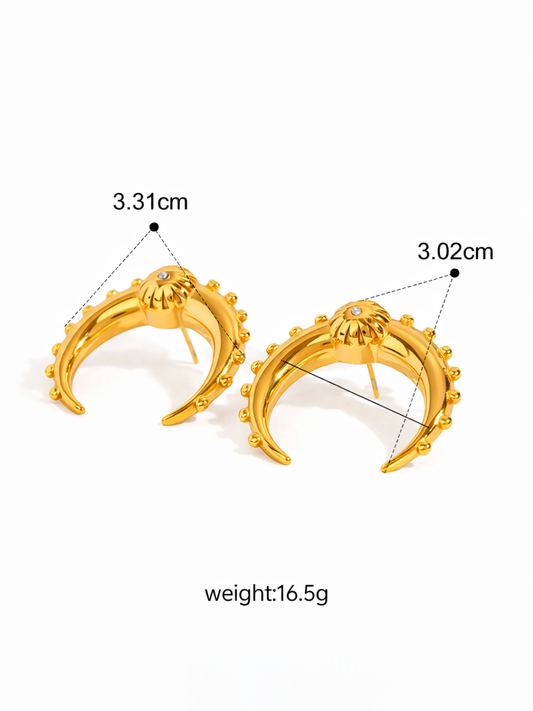 18KT Gold-Plated Crescent Moon Bead Dot Statement Stud Earrings