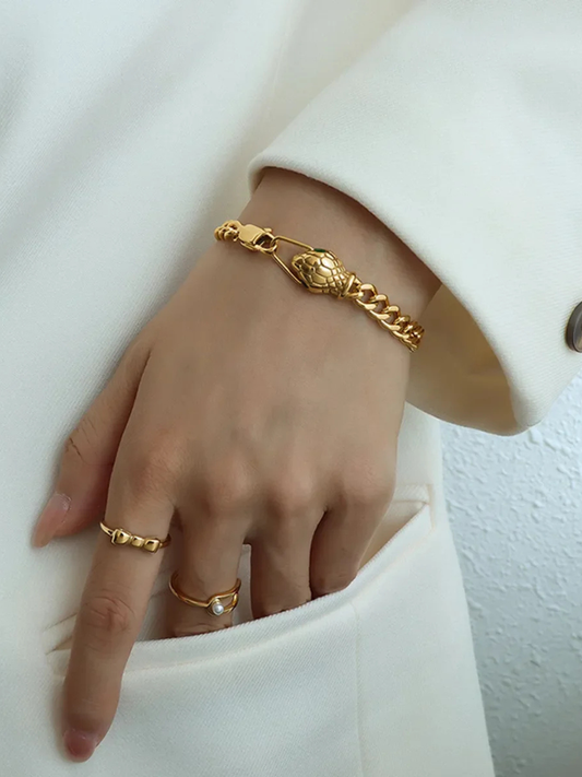 18KT Gold-Plated Snake Head Curb Chain Bracelet