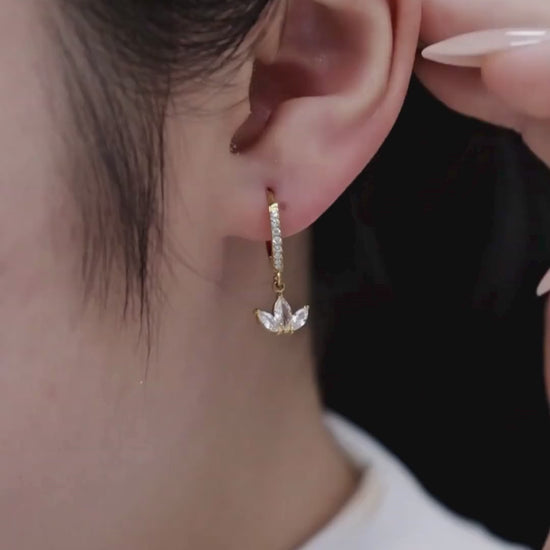 18KT Gold-Plated 3 Leaf Drop CZ Huggies Hoop Earrings