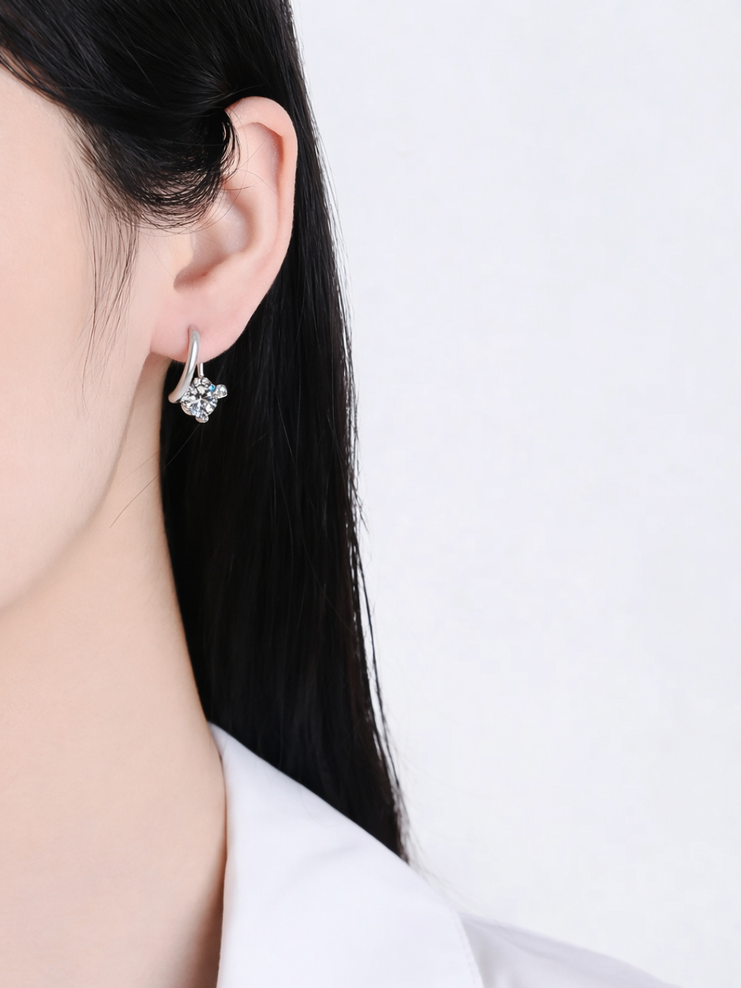 Modern and elegant, these twisted huggie hoop earrings feature brilliant 1.0ct moissanite stones set in premium 925 sterling silver. Designed with a sleek geometric silhouette, they offer diamond-like sparkle, a secure fit, and everyday sophistication—perfect for effortless day-to-night styling.